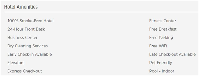 Relax and recharge at our pet-friendly hotel, featuring comfortable accommodations, convenient amenities, and our signature Here for You service. Each non-smoking guest room is equipped with a mini-refrigerator, microwave, desk, ironing amenities, a flat-screen HDTV, and coffee maker. Every morning, get energized with a workout at the fitness center and join us for our free Bright Side Breakfast®. You can stay in touch with the office or friends using free WiFi and our business center. We even offer an indoor pool.